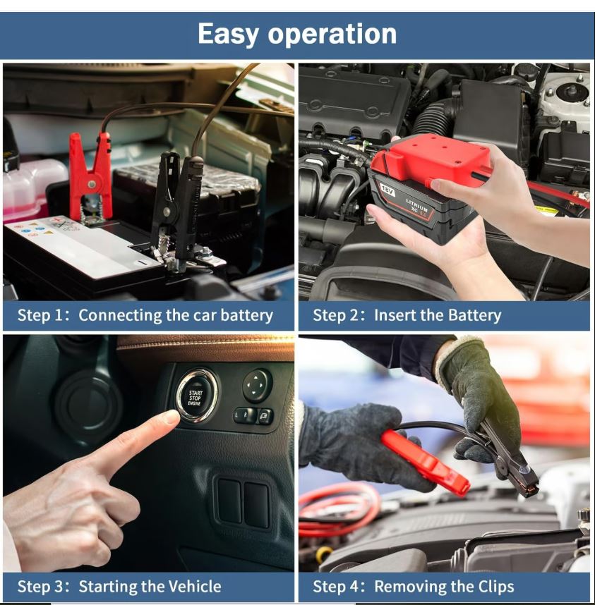 - ⚡Our jumper cables offer you a new solution, allowing you to conveniently use the power from the available cordless tool battery to start your car!