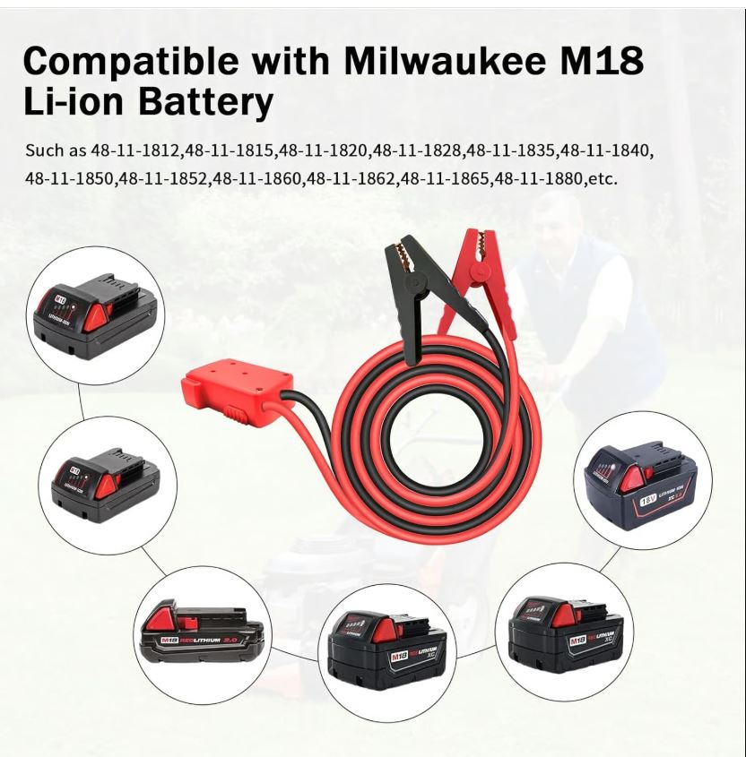 WIDE COMPATIBILITY:Â The adapter is compatible with most tool batteries (18V-20V) and car batteries, making it a versatile solution for different types of vehiclesÂ